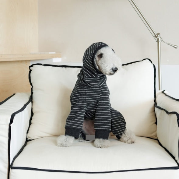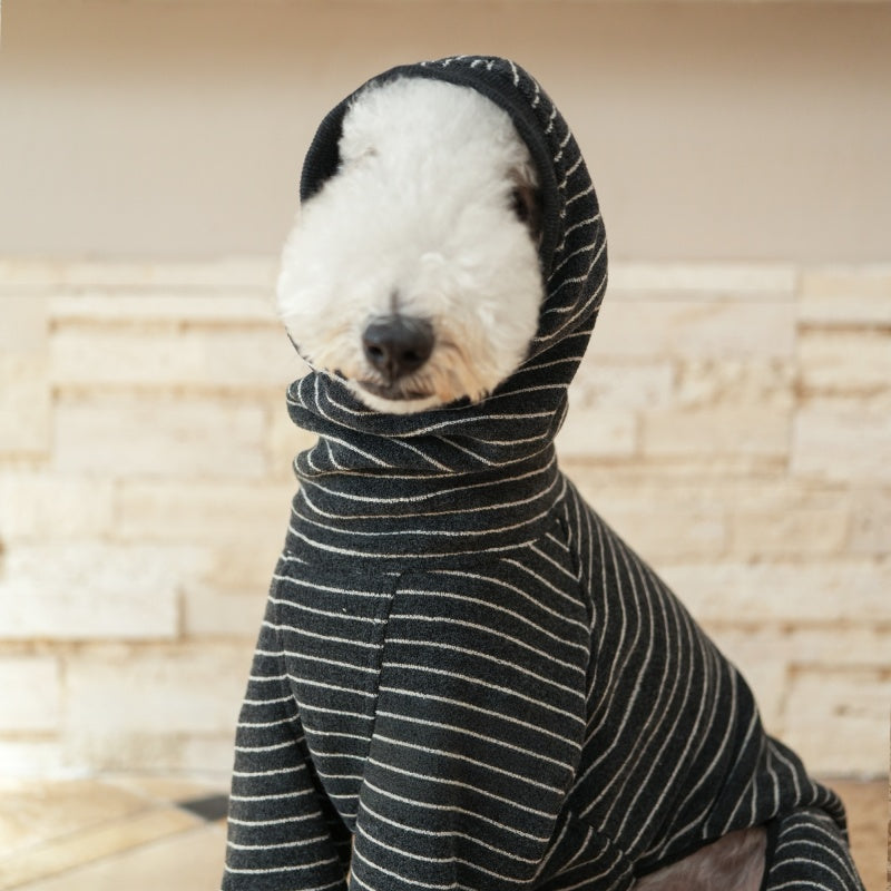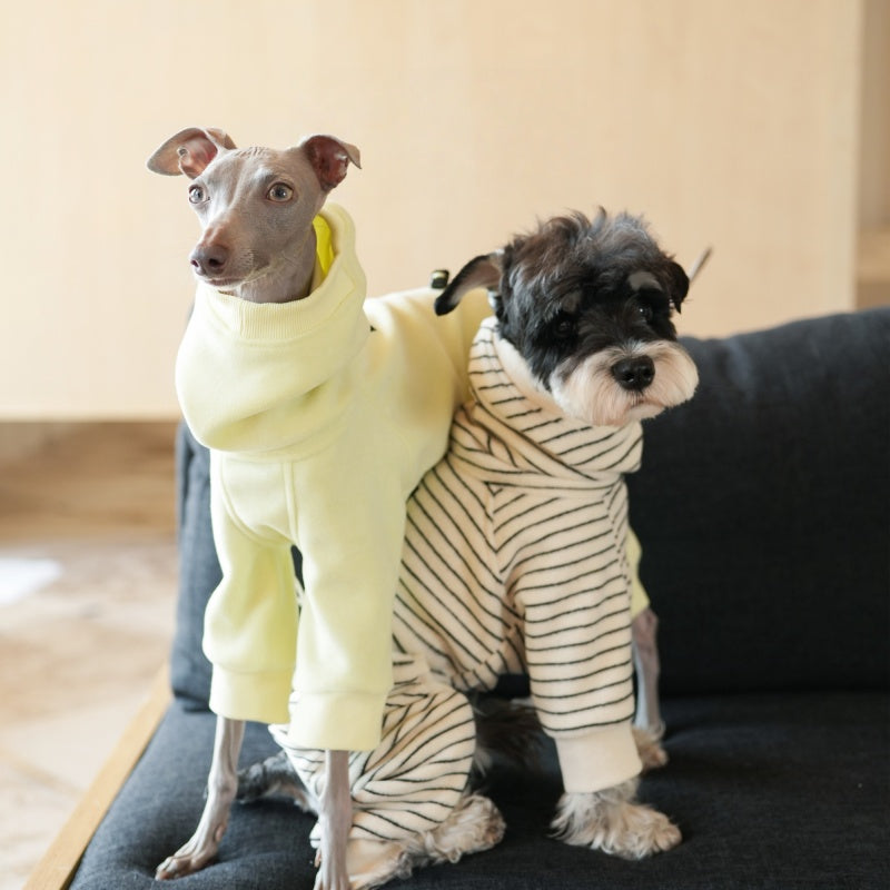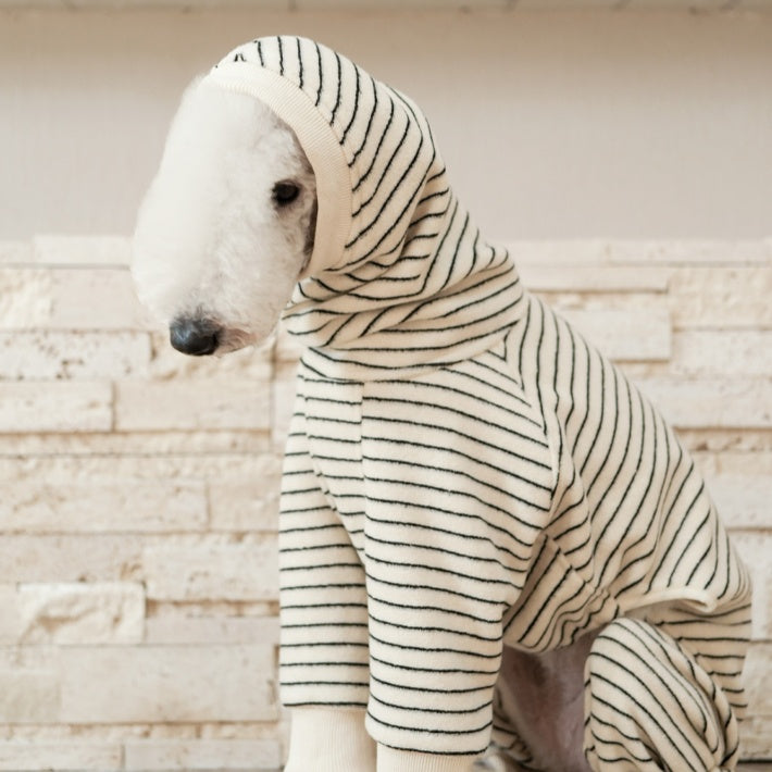 Designed specifically for slender breeds like Greyhounds, Whippets, and Bedlington Terriers, this Warm Terry Knit Hoodie Four-Leg Dog Onesie offers comprehensive warmth and protection. Crafted from soft terry knit fabric, it provides excellent insulation without sacrificing flexibility. The full four-leg coverage ensures your dog stays cozy during colder seasons while maintaining ease of movement. Perfect for dogs with fine coats, this onesie balances comfort and functionality, helping to keep your pet warm and comfortable outdoors or indoors.