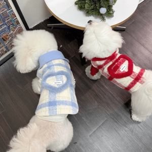 Woolen Coat Love Heart Dog Clothes Winter Button Cat Jacket